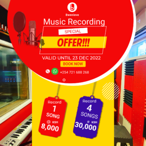 @bwenievestudios it’s that season again where you can record one song at only Ksh. 8000 or Four songs at Ksh. 30,000 . Book your studio time now via +254 721 688 268 or Whatsapp.